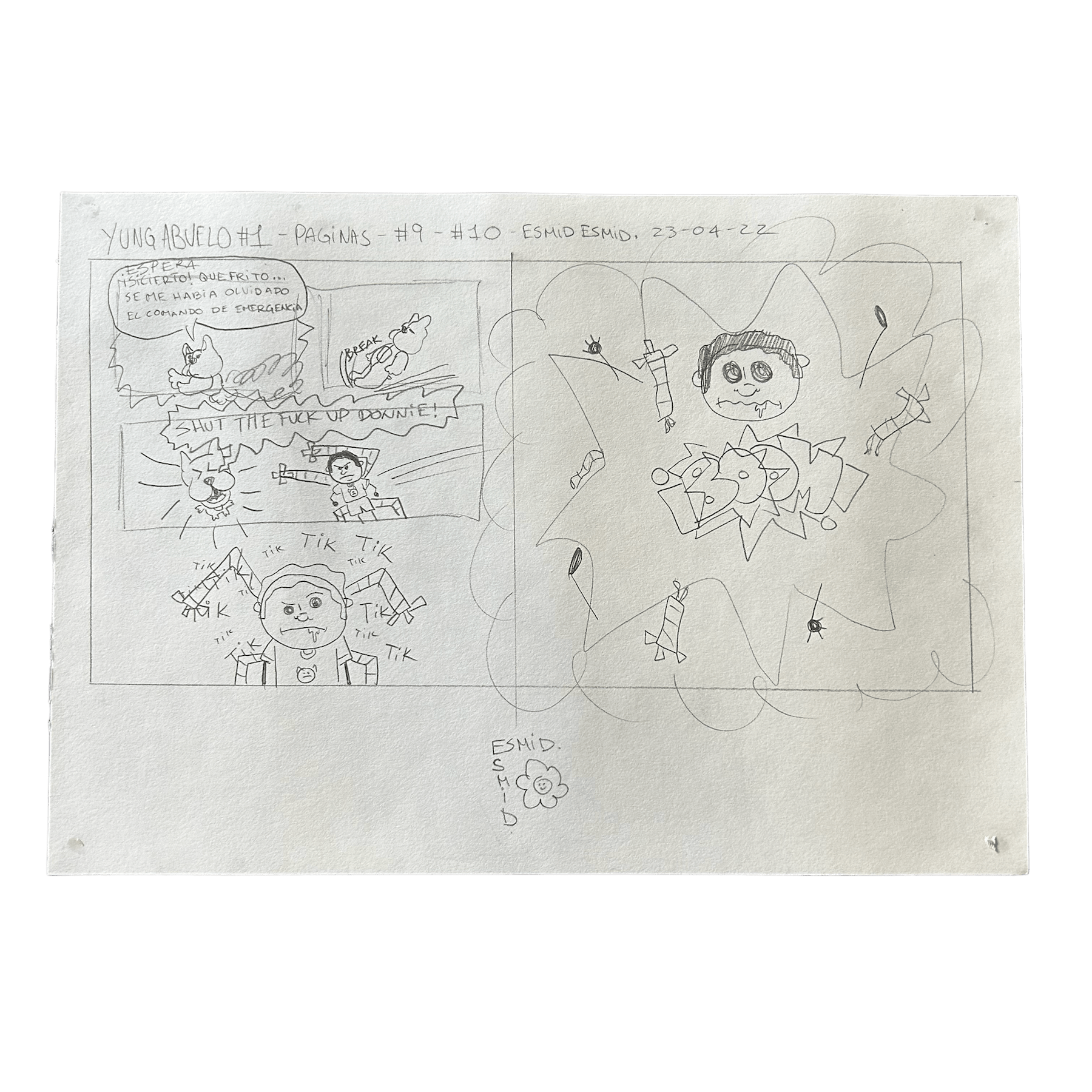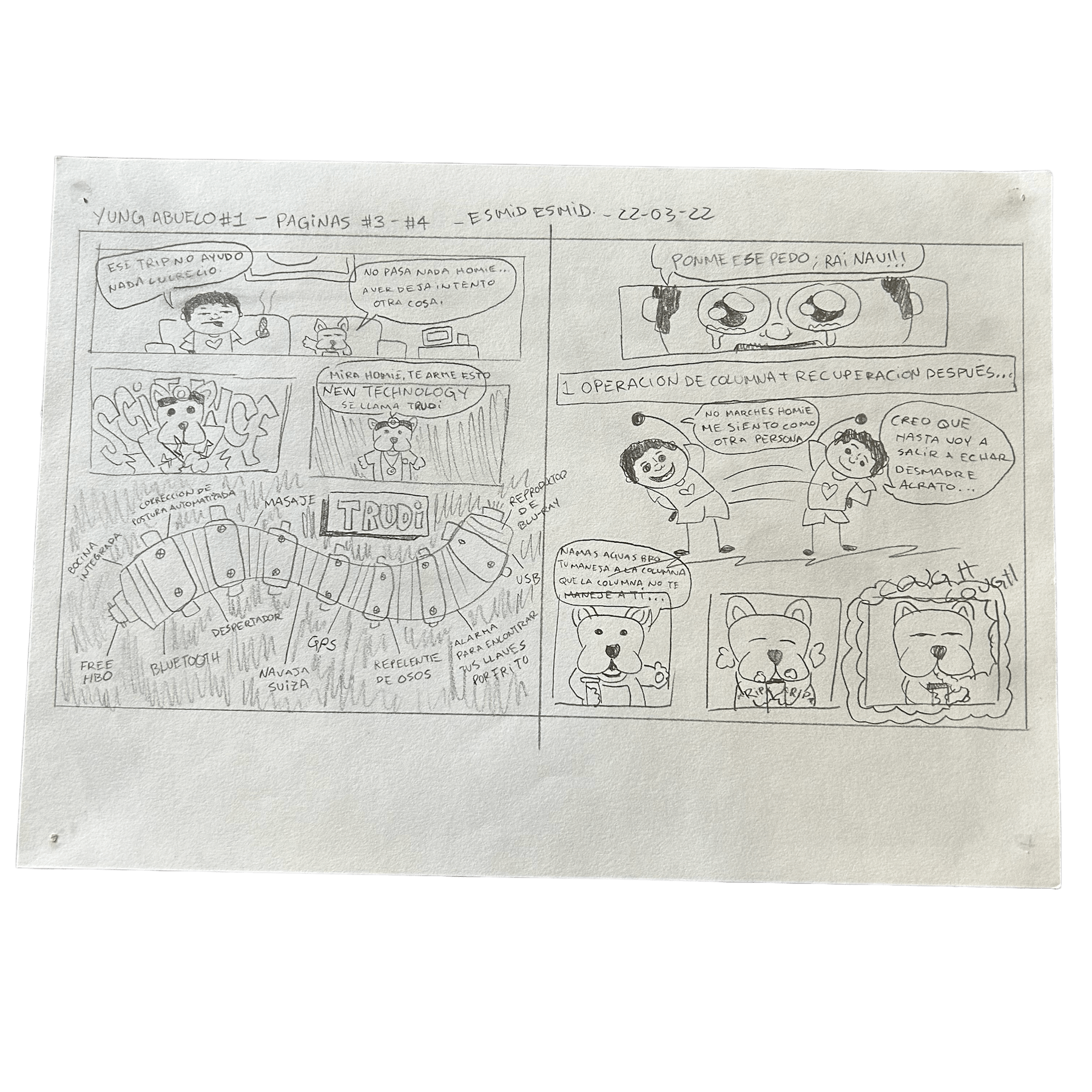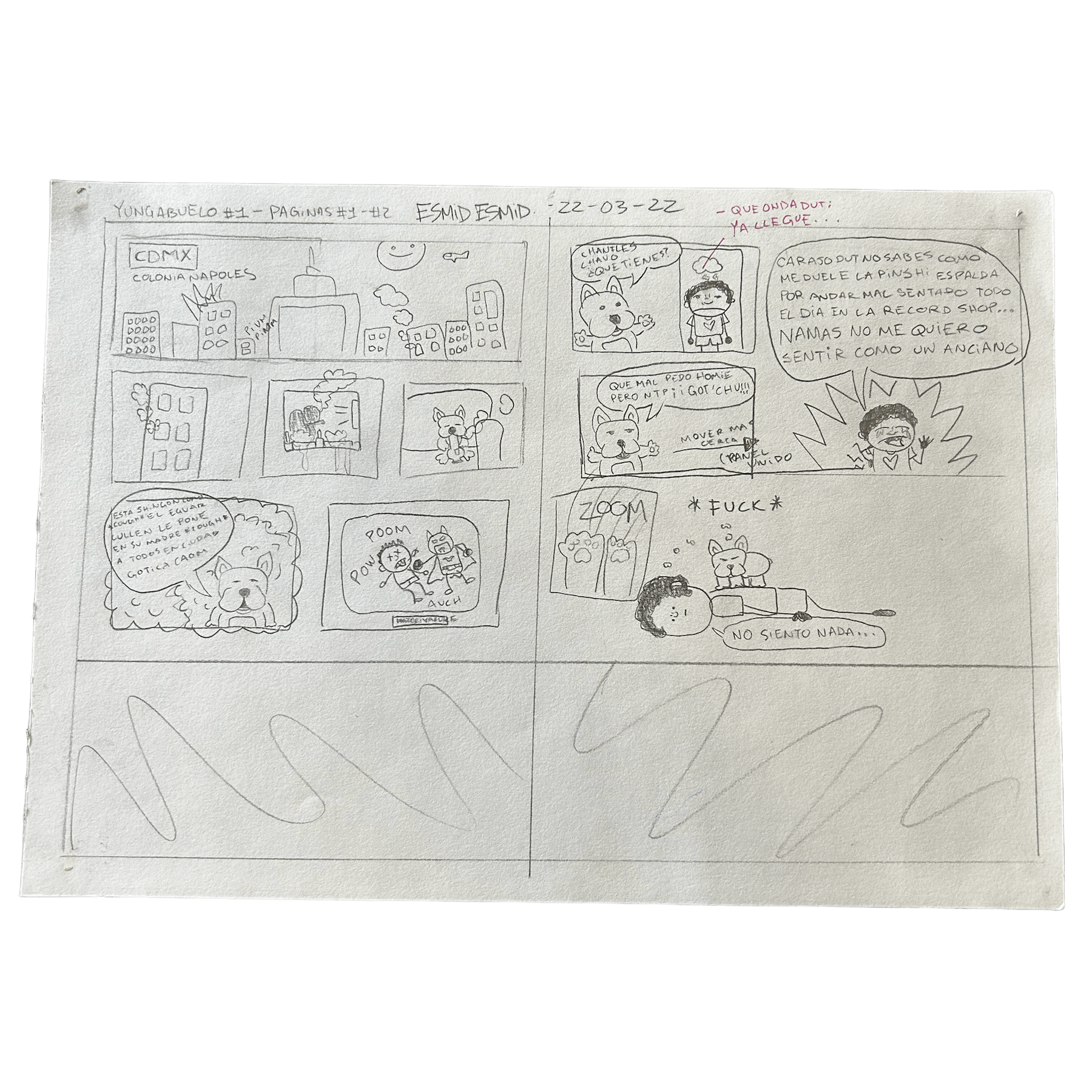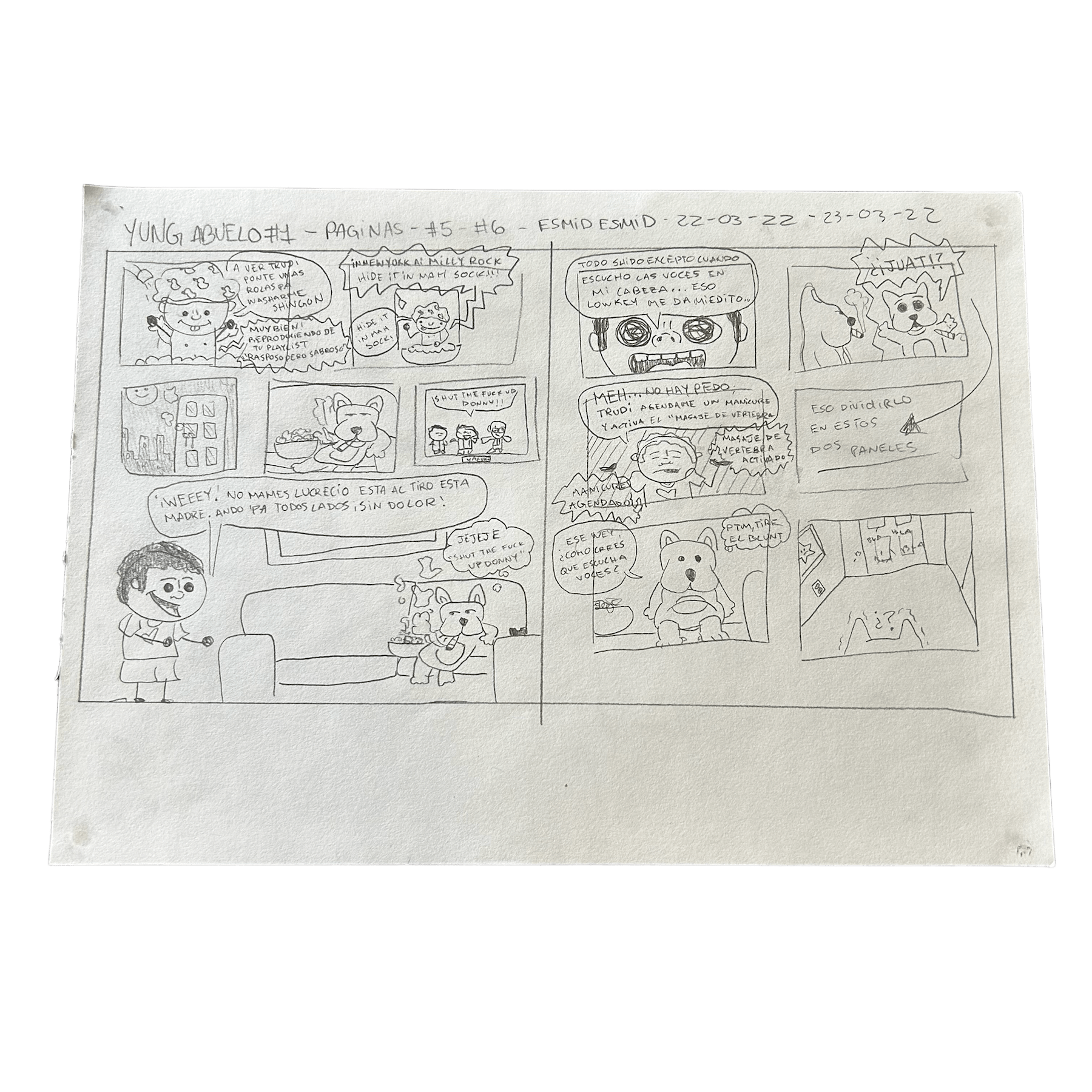 «STORYBOARD PARA COMIC YUNG ABUELO» – Pluma y Crayon en papel -2022