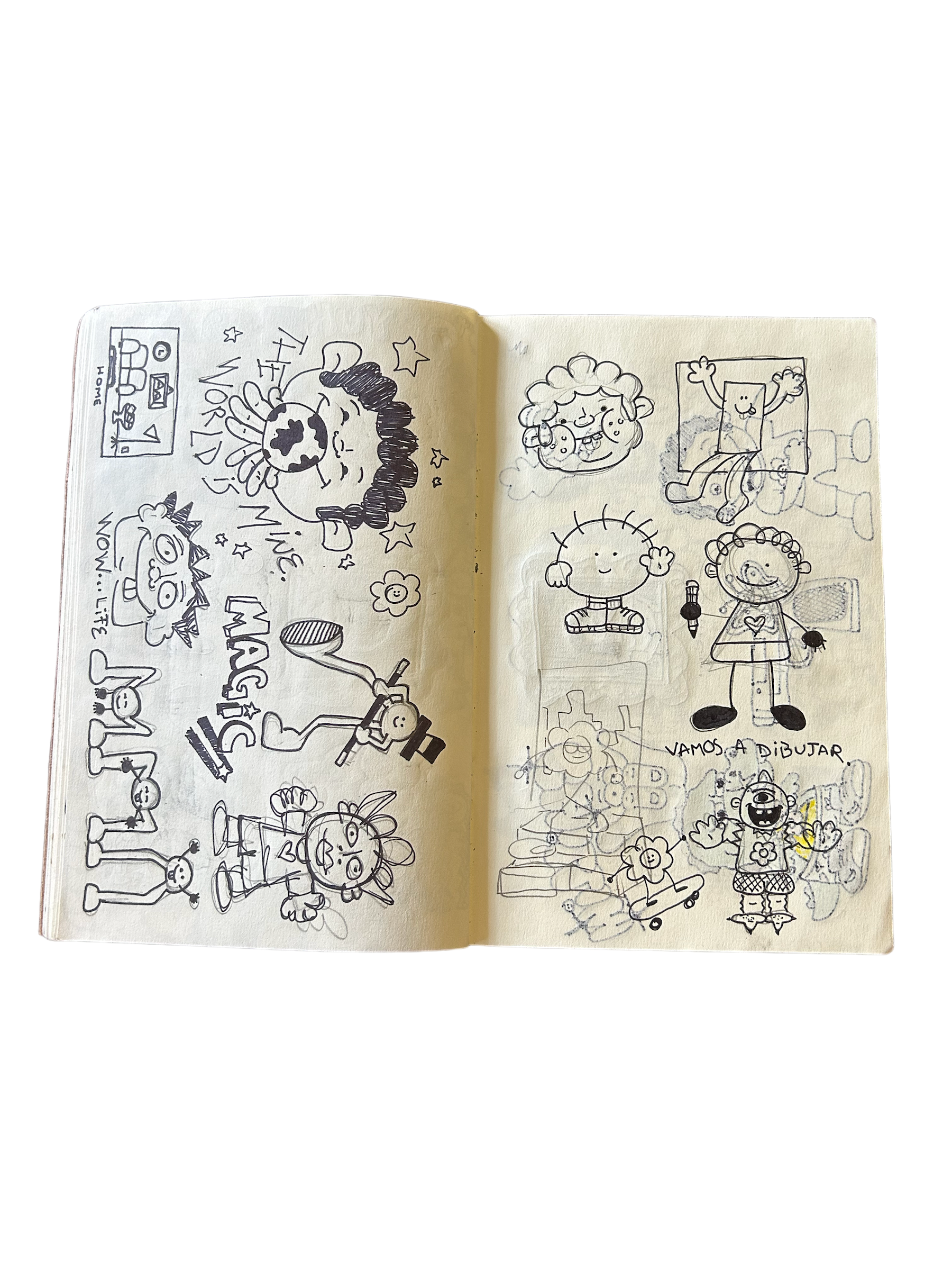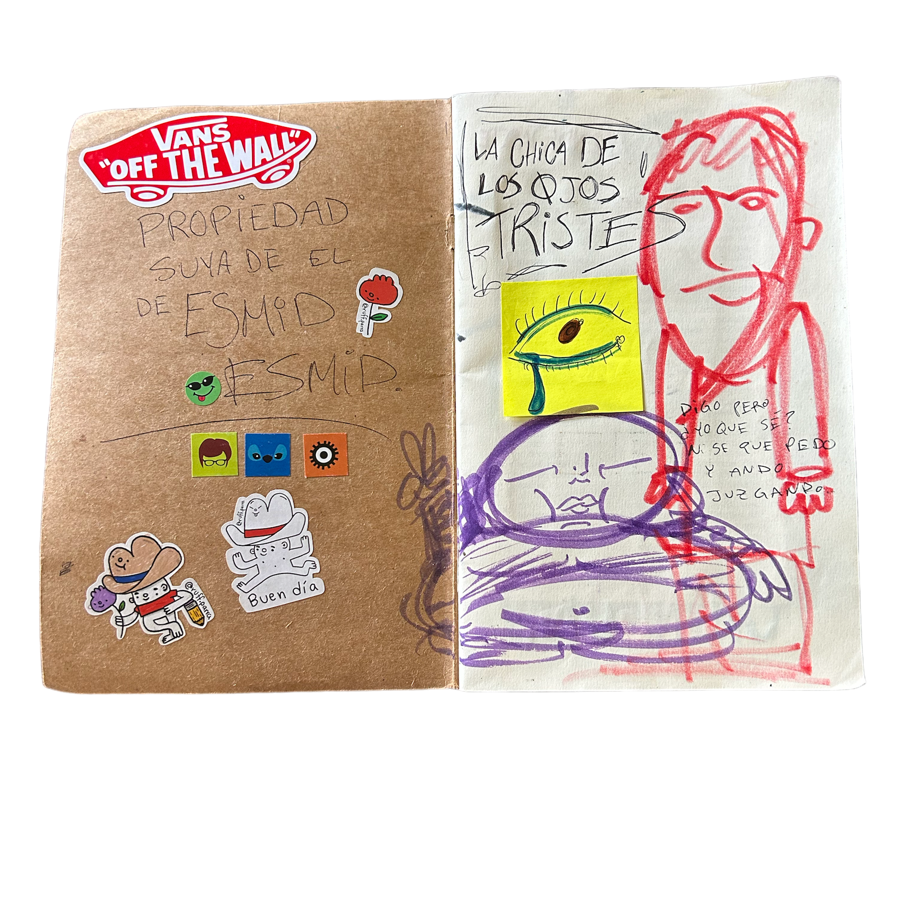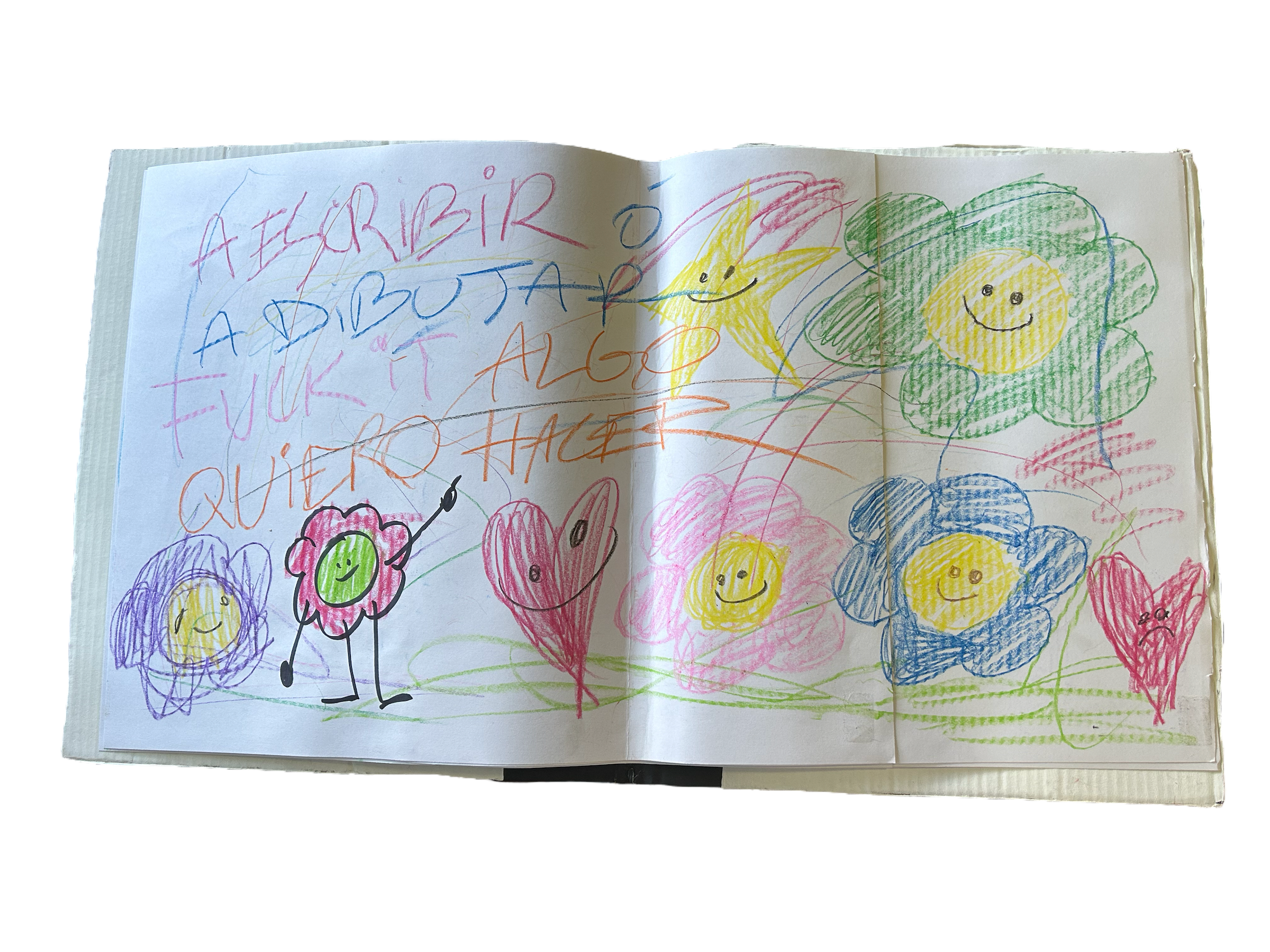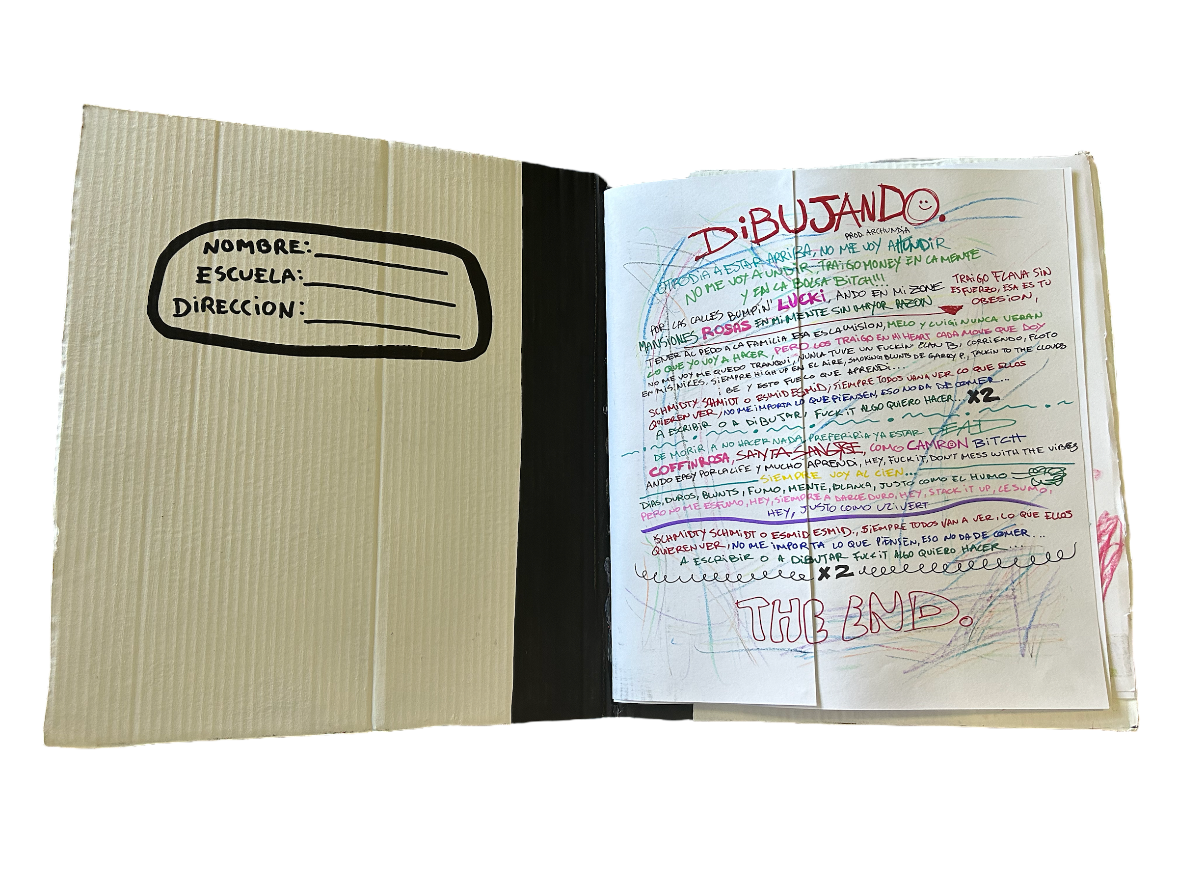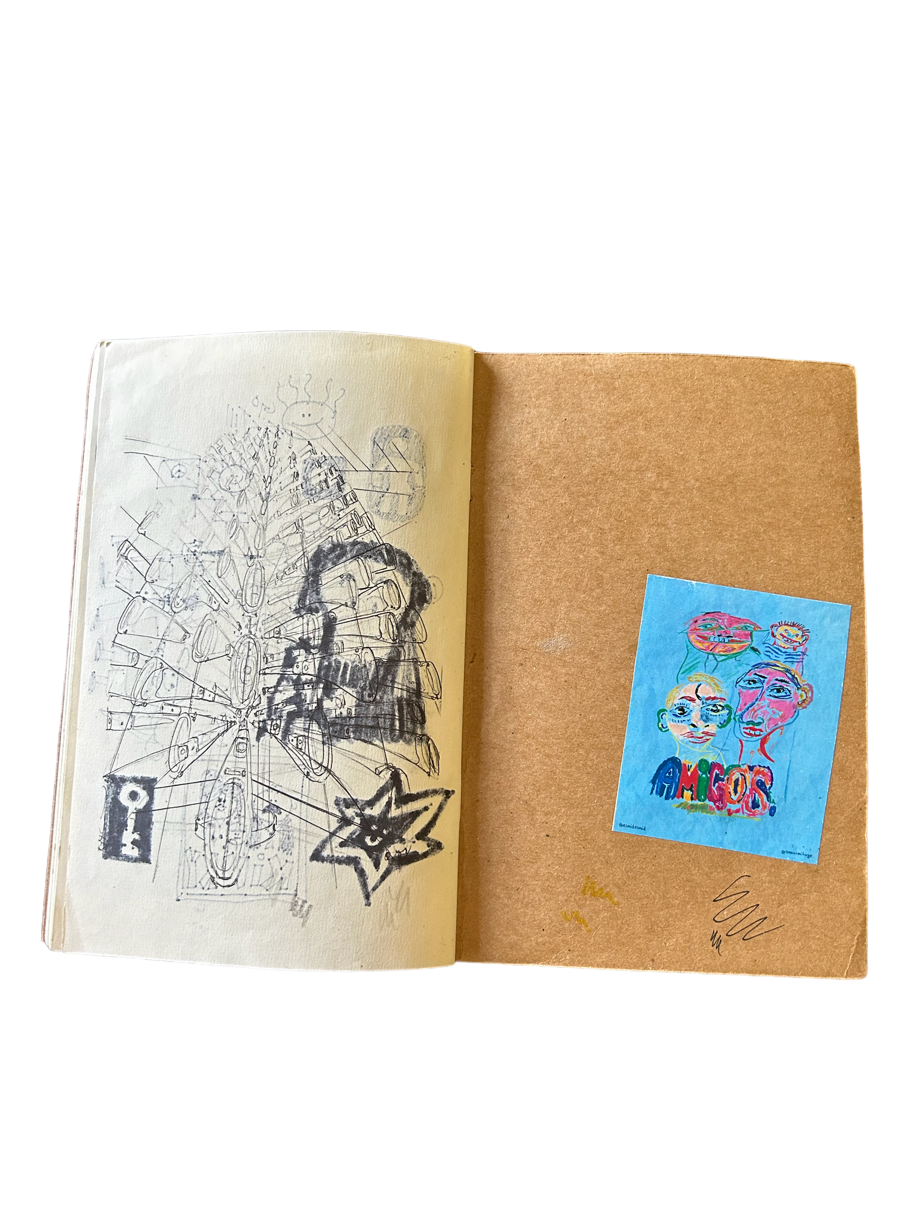 «CUADERNO DE DIBUJO EXTRA GRANDE PARA VIDEO MUSICAL DE DIBUJANDO» – Acrílico, Plumón y Pluma en papel y cartón -2023