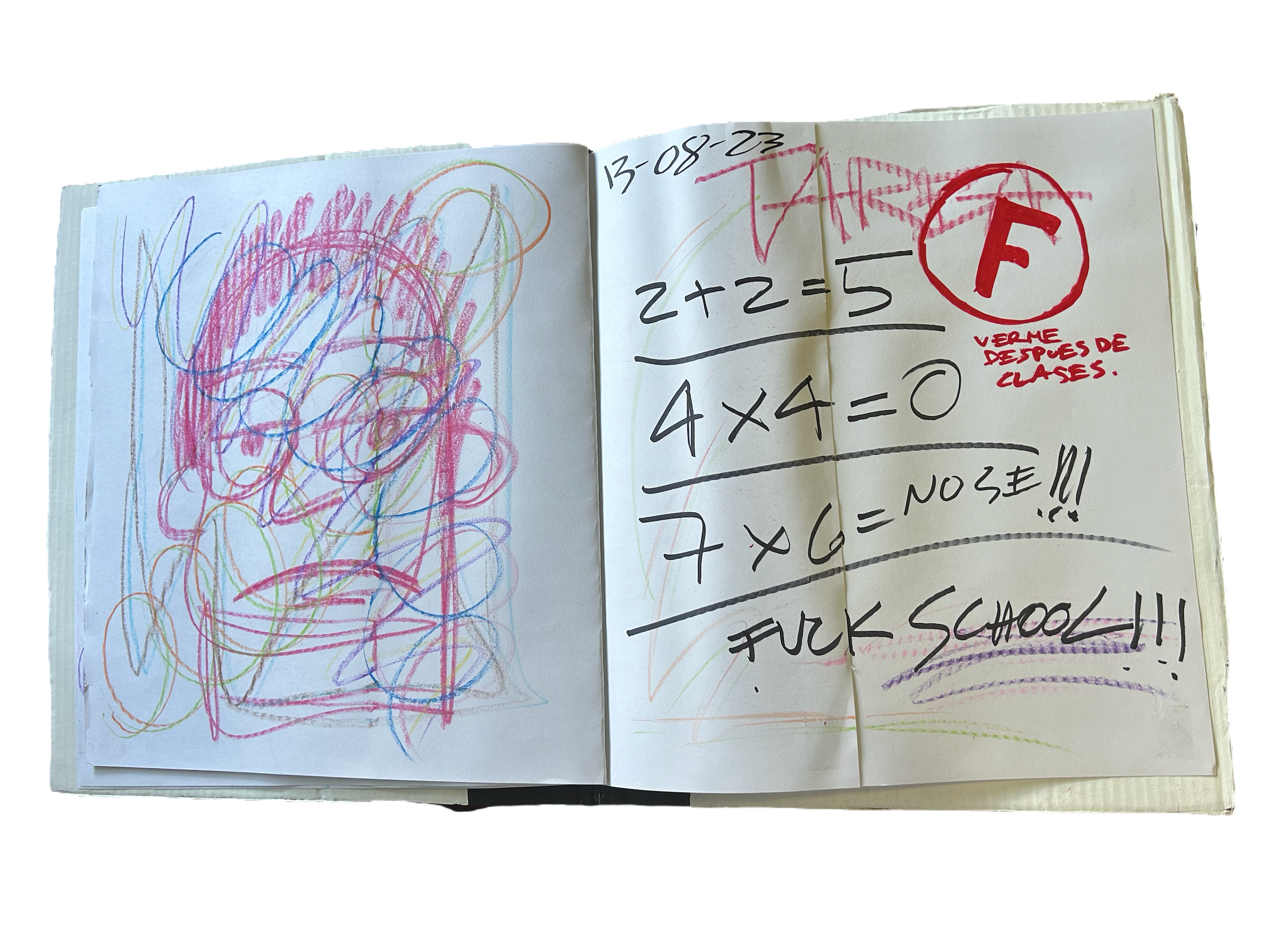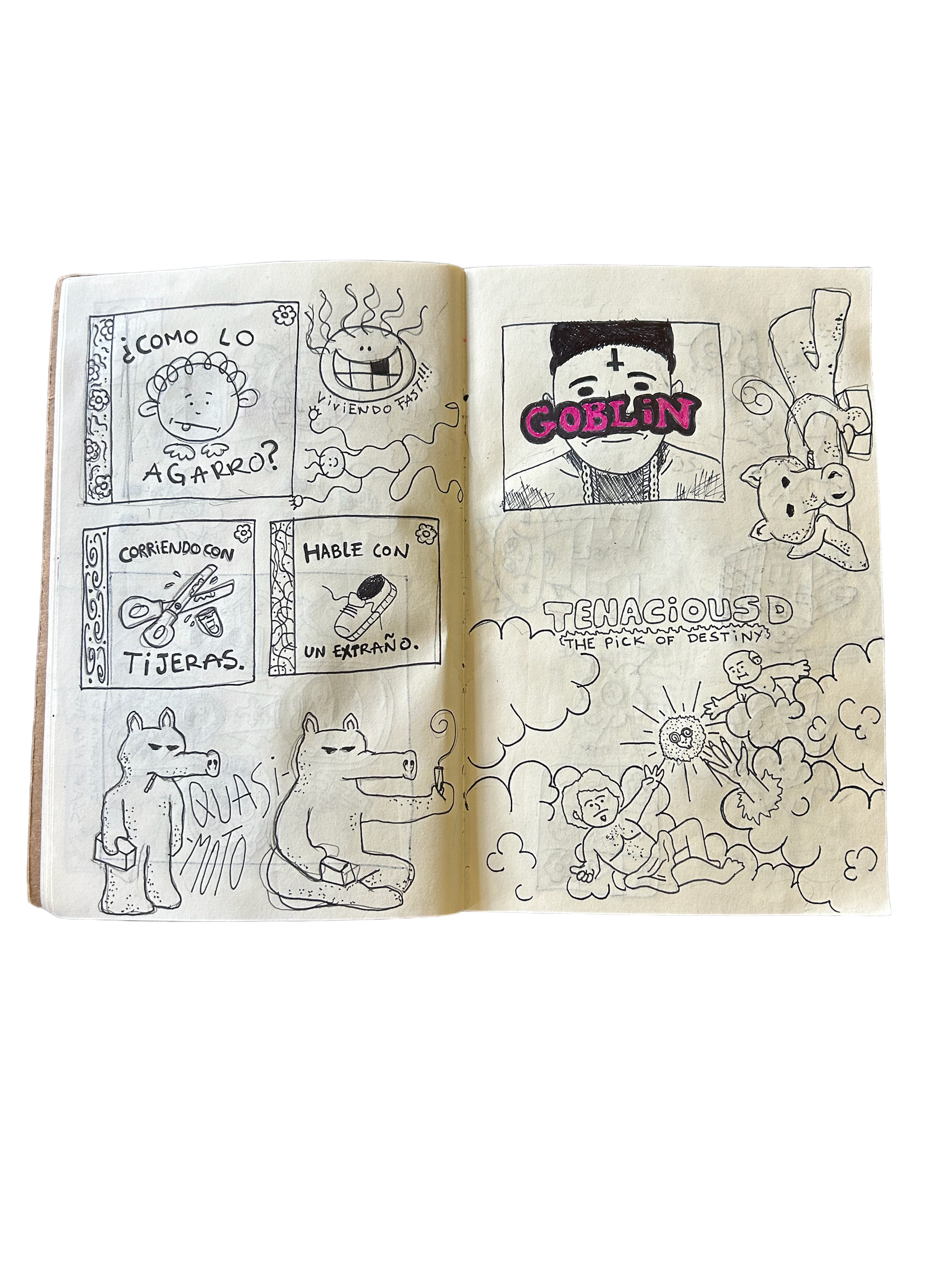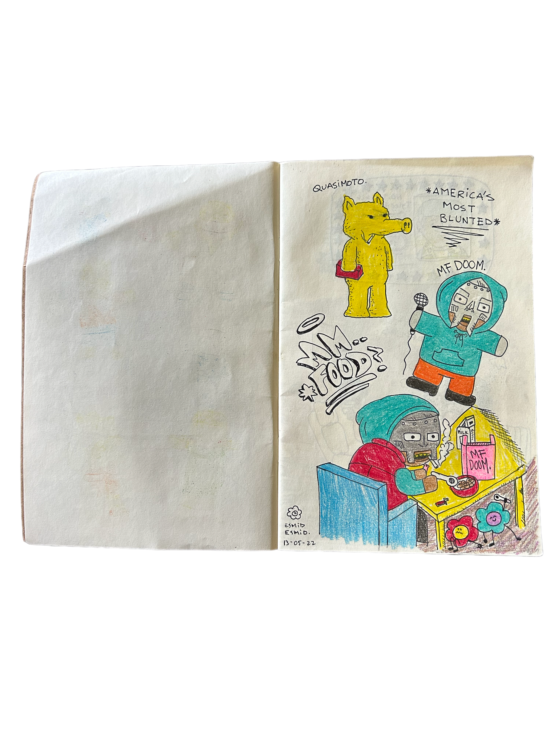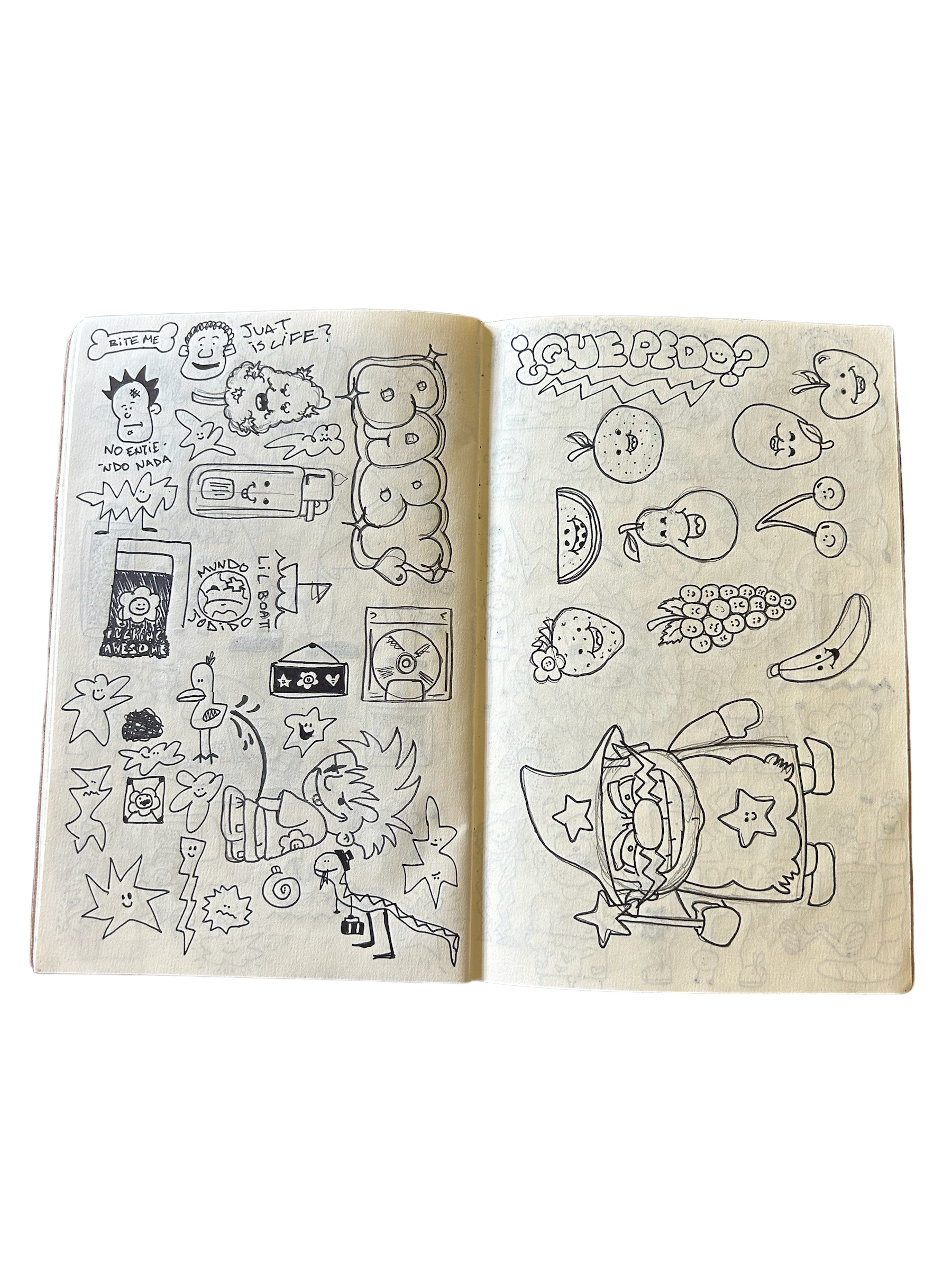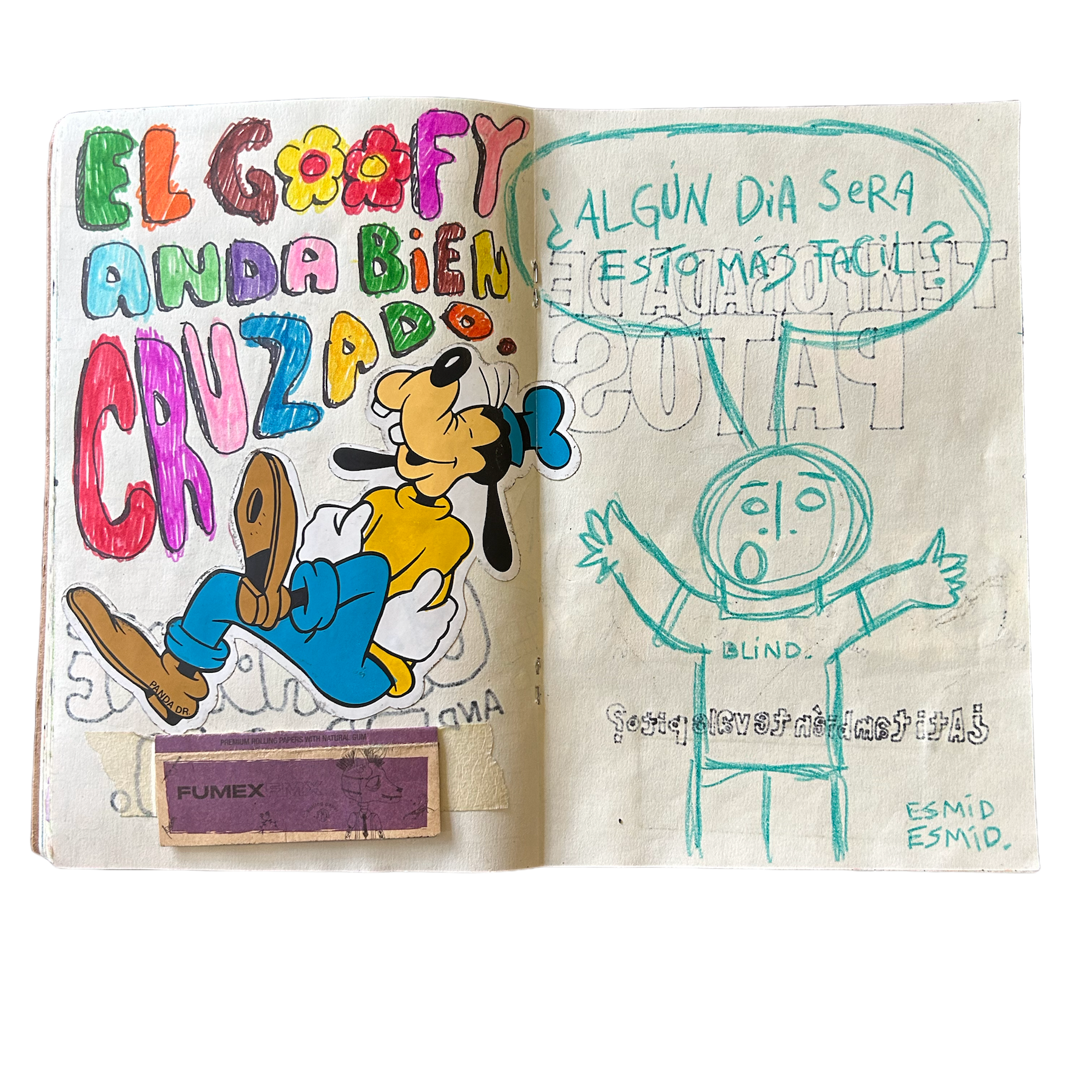 «CUADERNO DE DIBUJO EXTRA GRANDE PARA VIDEO MUSICAL DE DIBUJANDO» – Acrílico, Plumón y Pluma en papel y cartón -2023