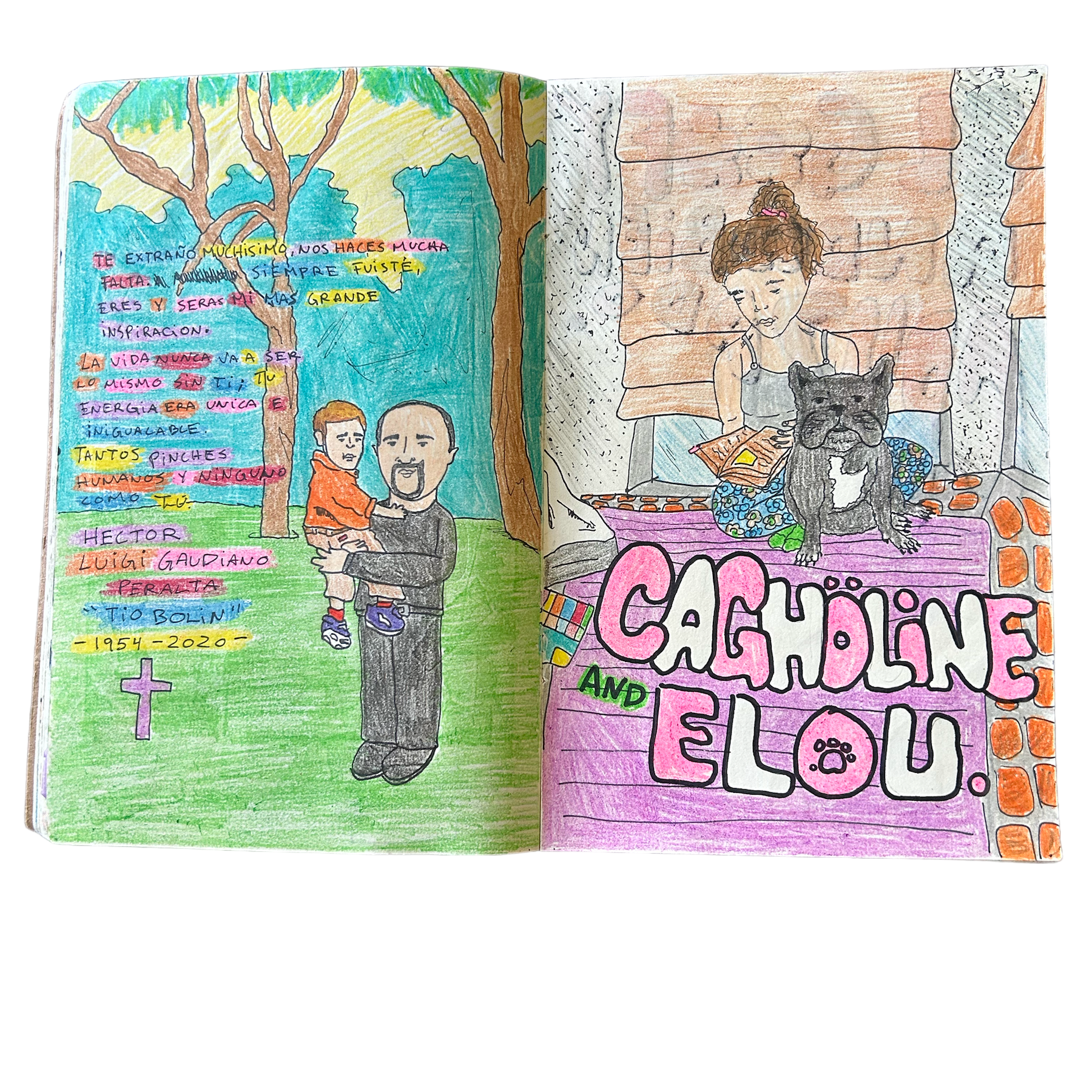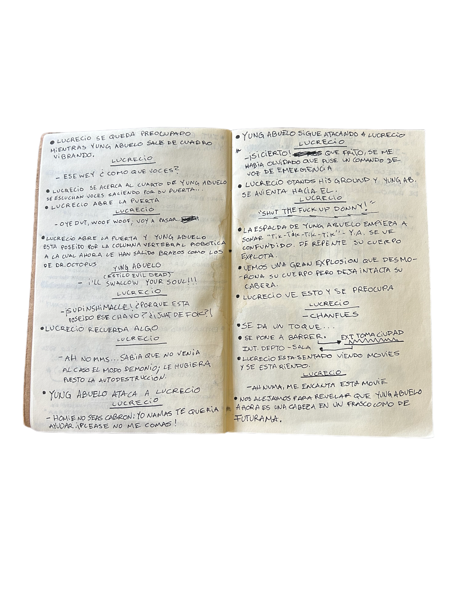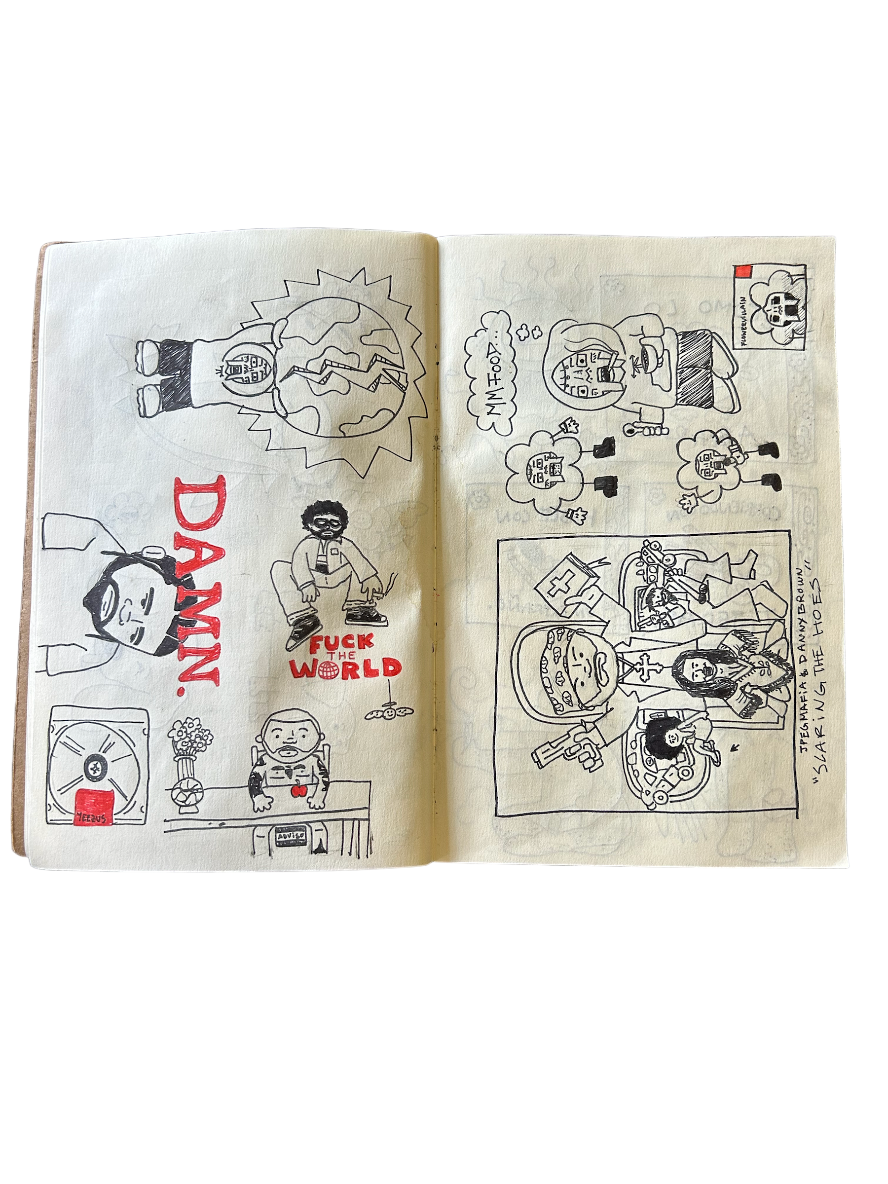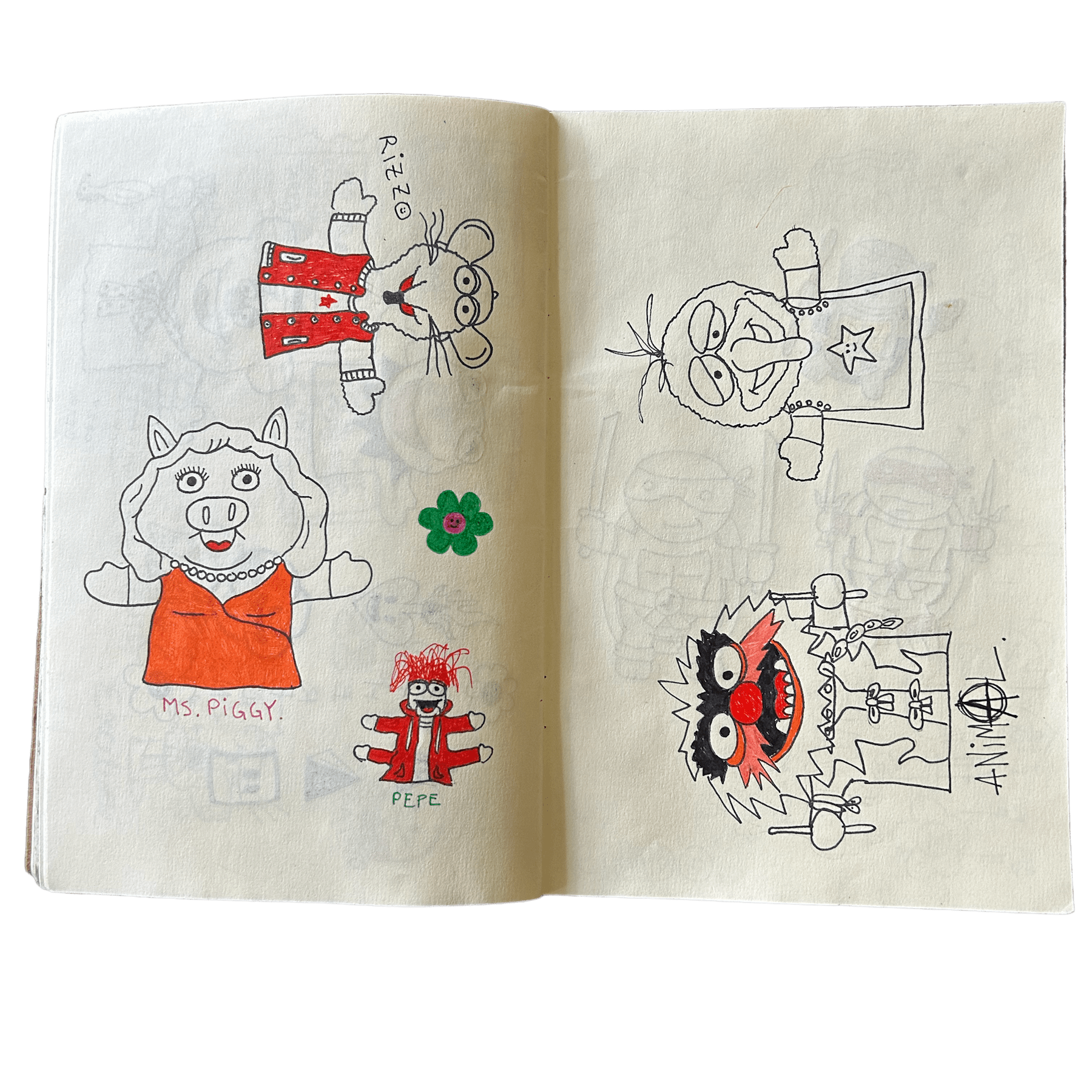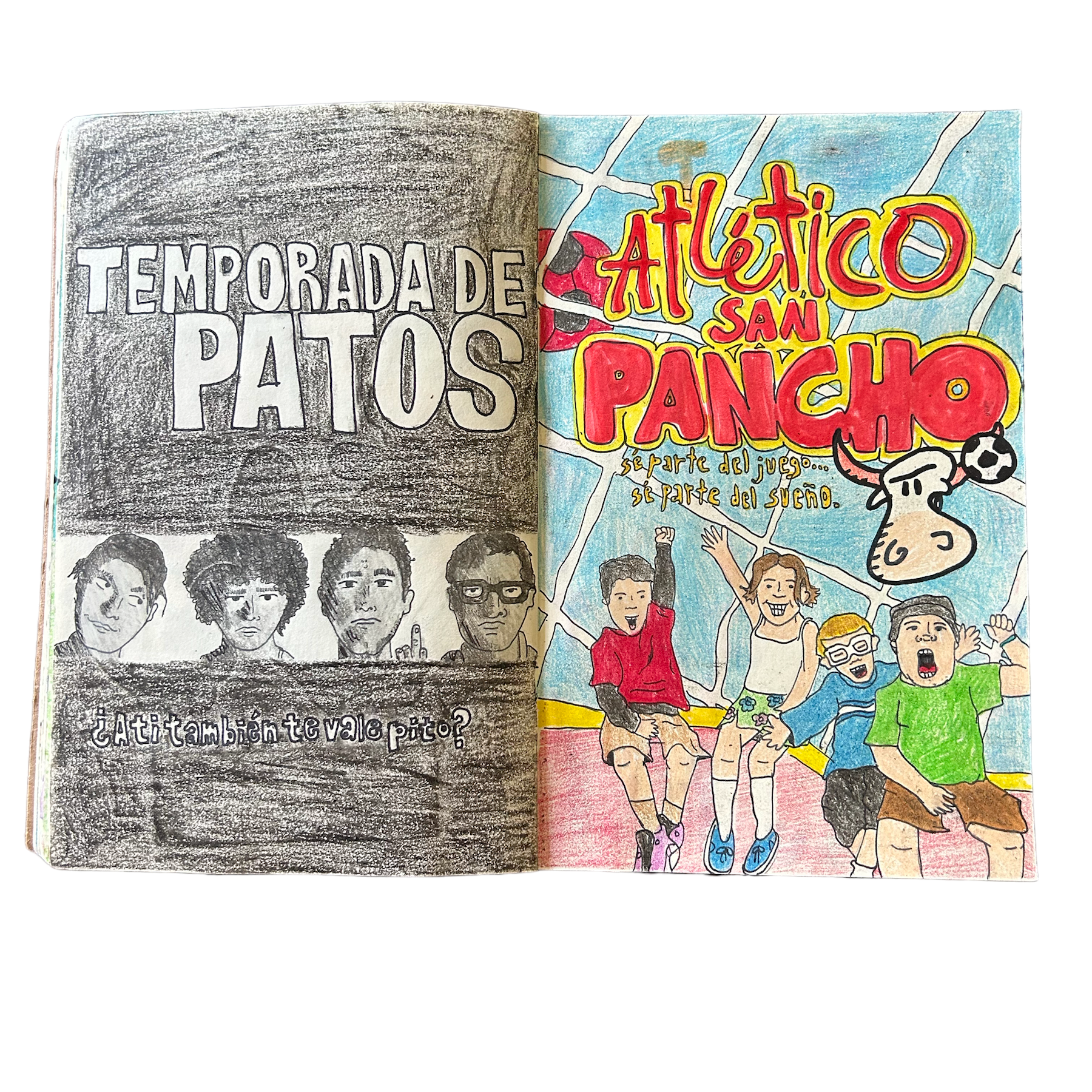 «CUADERNO DE DIBUJO EXTRA GRANDE PARA VIDEO MUSICAL DE DIBUJANDO» – Acrílico, Plumón y Pluma en papel y cartón -2023
