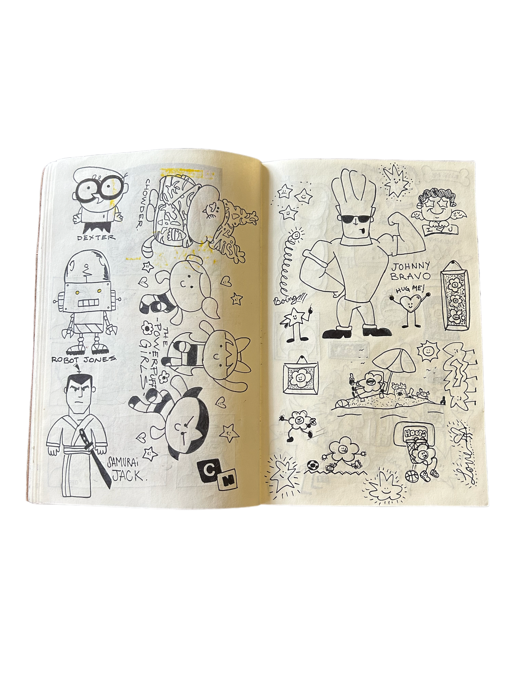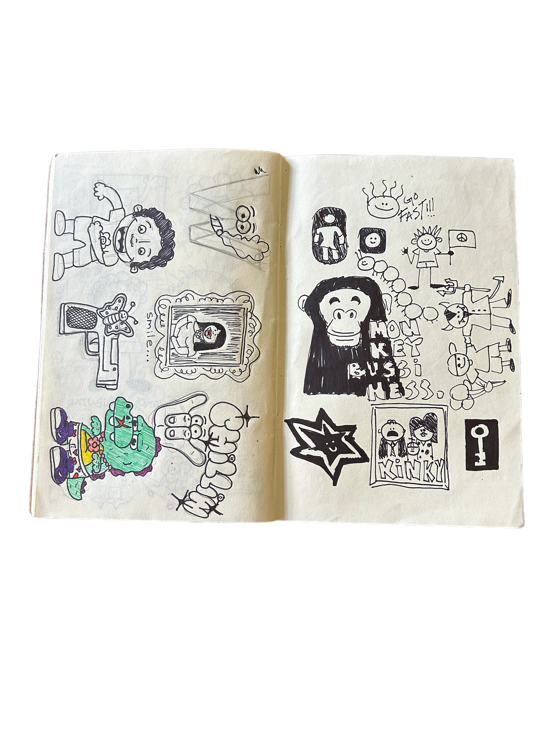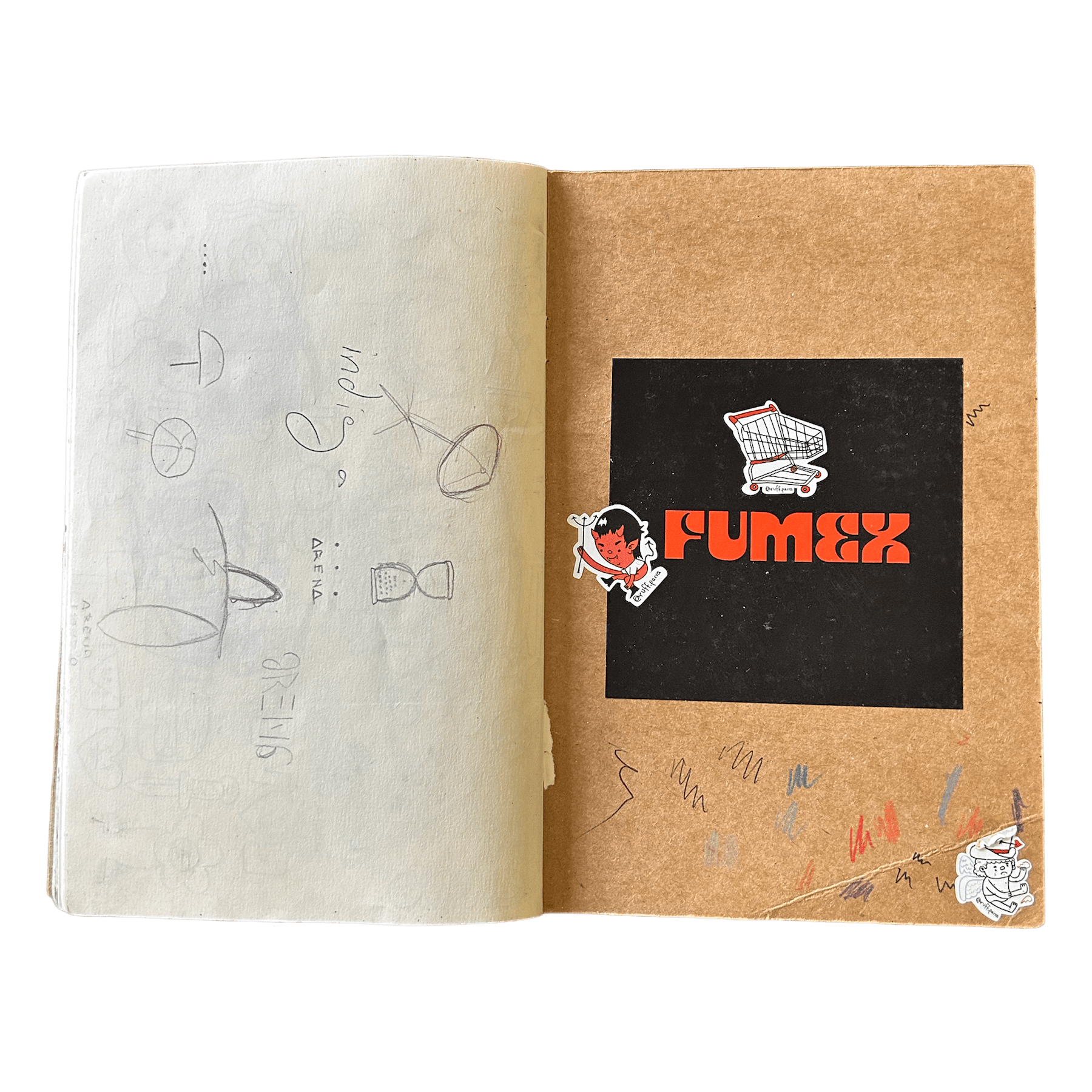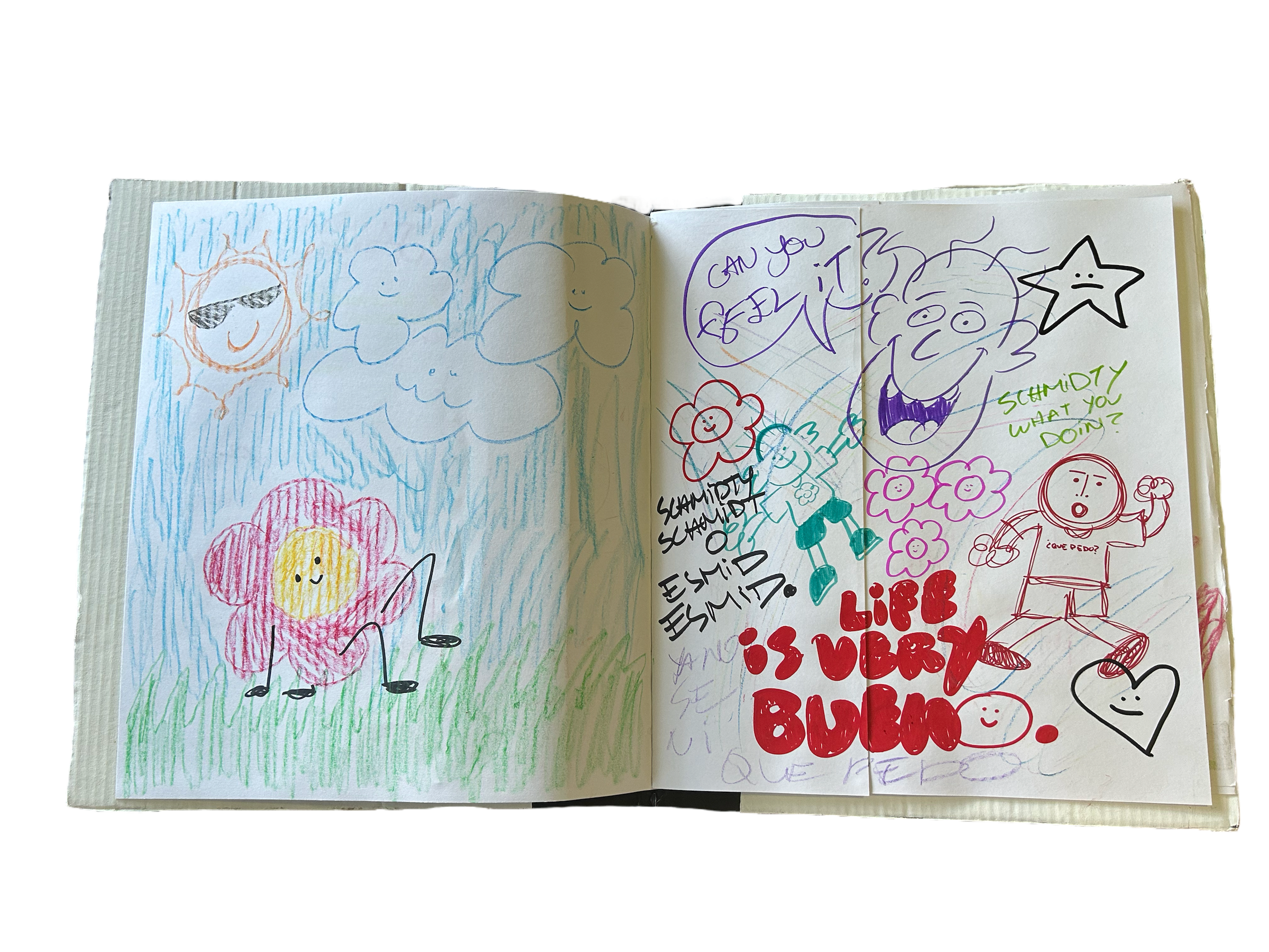 «CUADERNO DE DIBUJO EXTRA GRANDE PARA VIDEO MUSICAL DE DIBUJANDO» – Acrílico, Plumón y Pluma en papel y cartón -2023