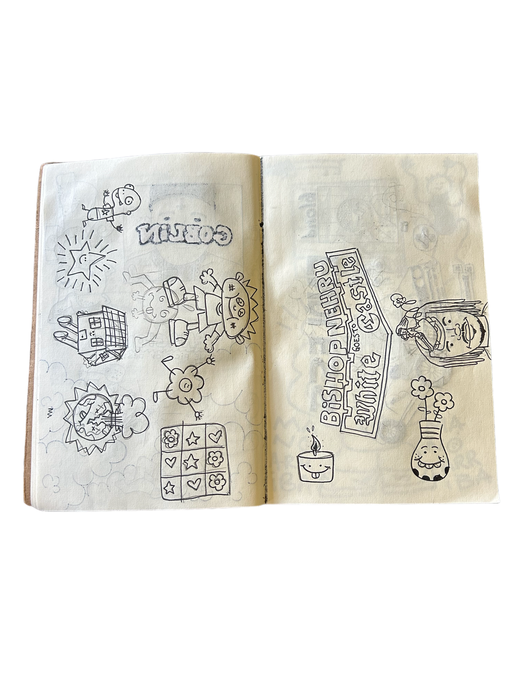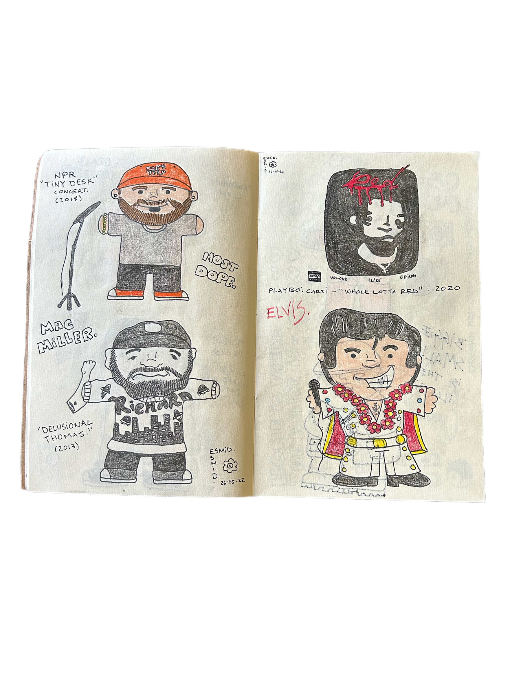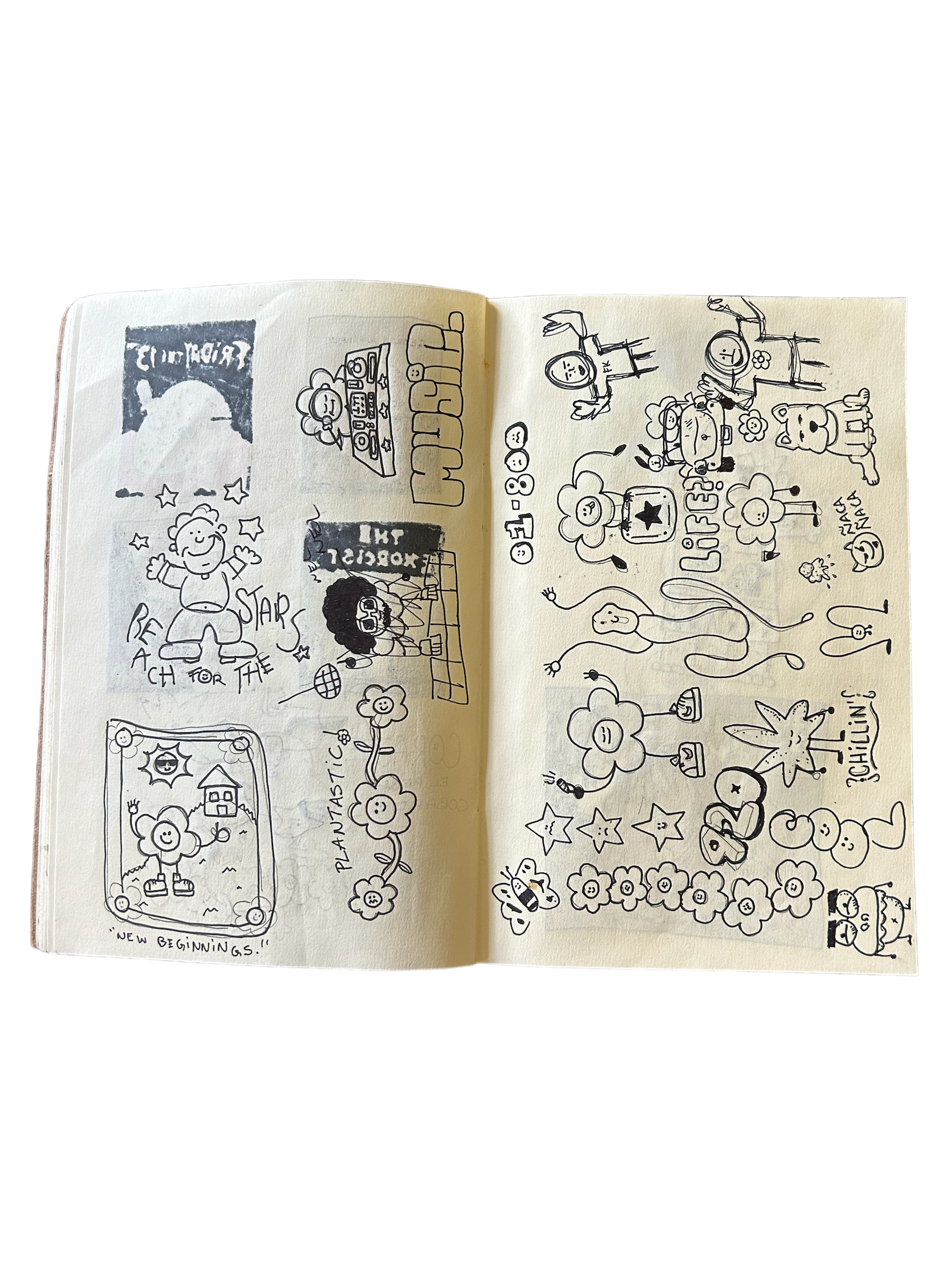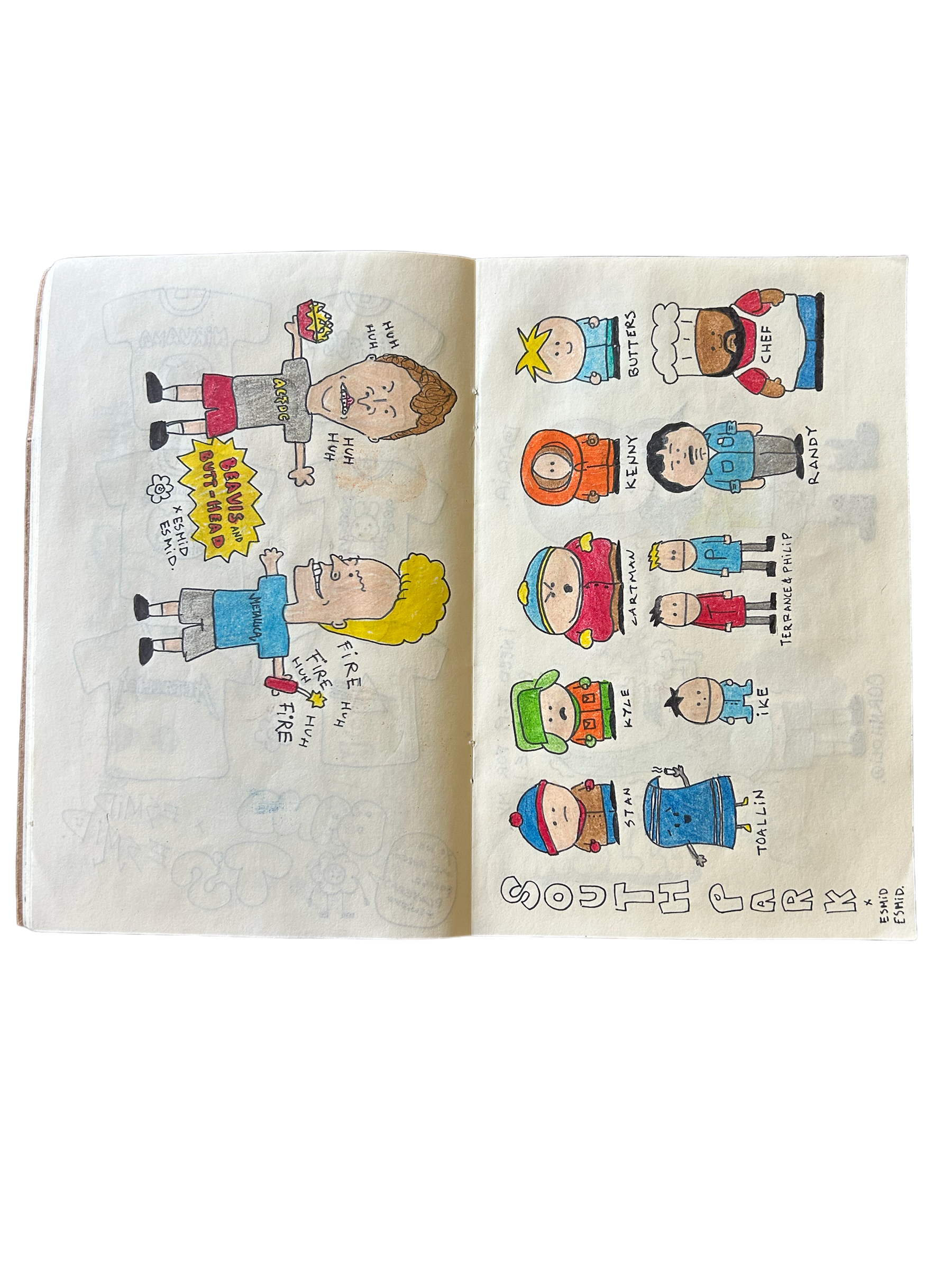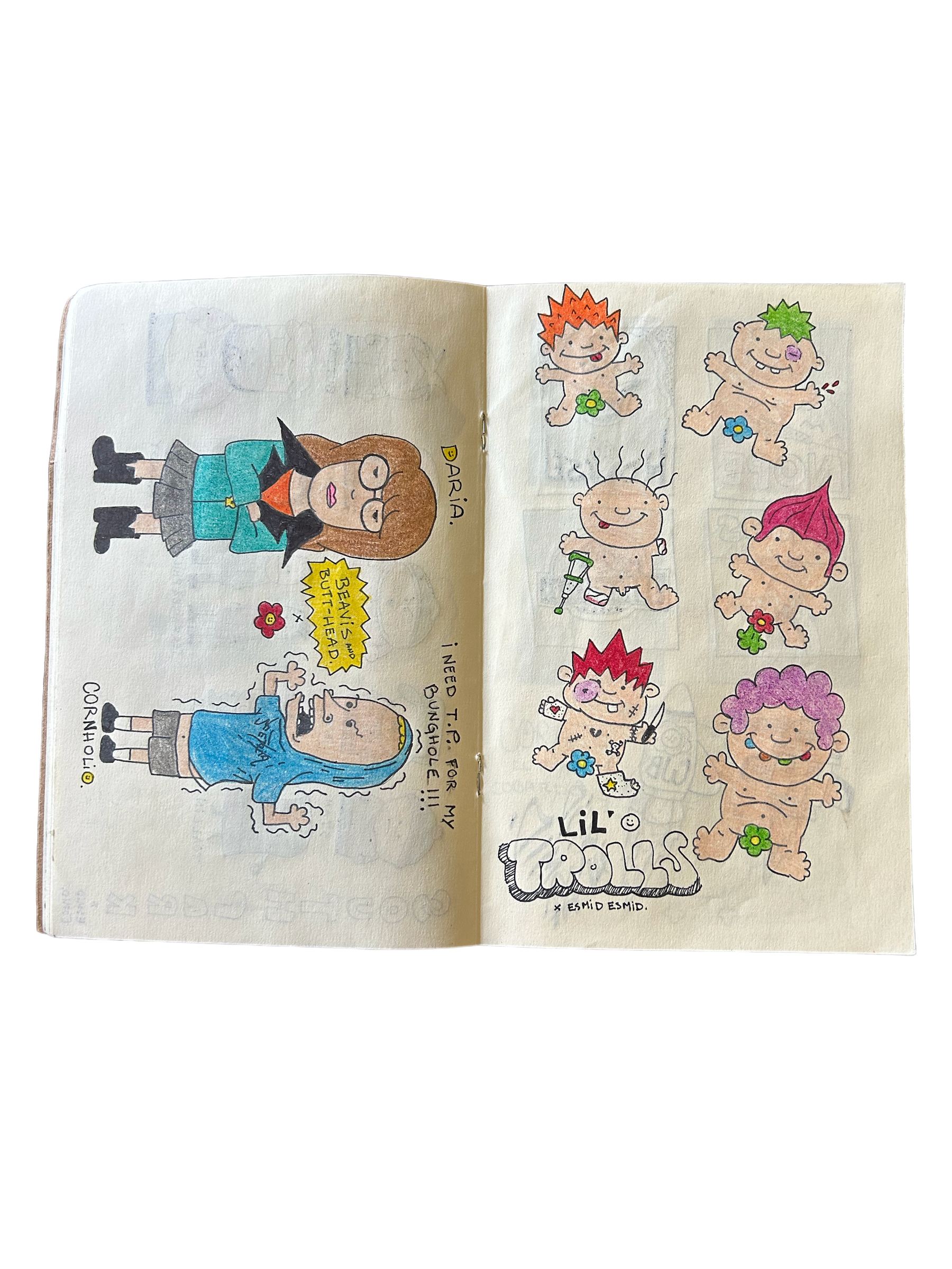 «CUADERNO DE DIBUJO EXTRA GRANDE PARA VIDEO MUSICAL DE DIBUJANDO» – Acrílico, Plumón y Pluma en papel y cartón -2023